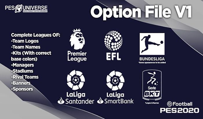 آپشن فایل PESUniverse V6 برای eFootball PES 2020 نسخه PS4 که به تازگی ساخته شده است را میتوانید با حجم 630 مگابایت – 603 مگابایت و با لینک کاملا مستقیم و رایگان از سرور های دانلود سایت مودینگ وی دات آی آر دانلود کرده و طبق اموزشی که در انتهای صفحه قرار دارد روی بازی خود نصب کنید و از ان لذت ببرید.