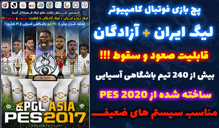 دانلود پچ لیگ ایران PGL Asian برای PES 2017 با لیگ آزادگان + صعود و سقوط