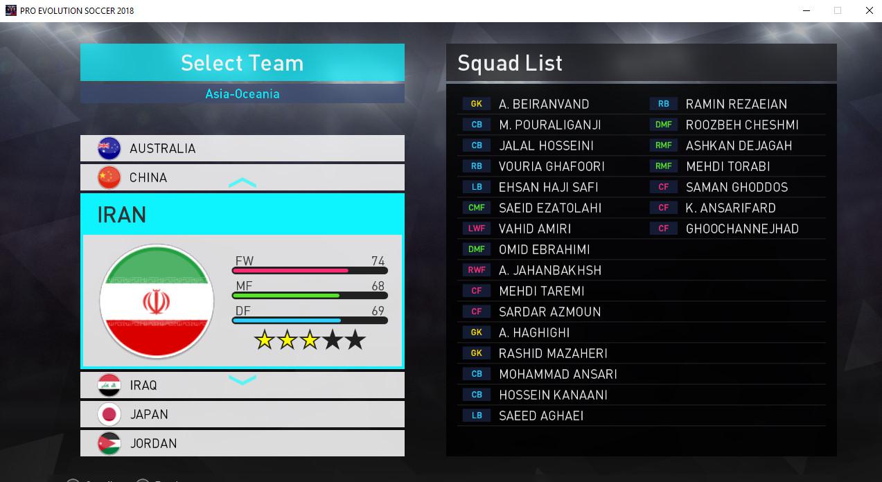 ✔ آپدیت تیم های ملی