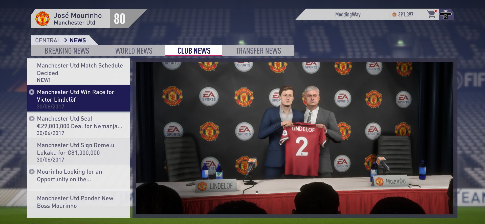 3- بازی فیفا18 را اجرا کرده و گزینه Load Career را انتخاب کنید و لود مورینیو را انتخاب کنید.