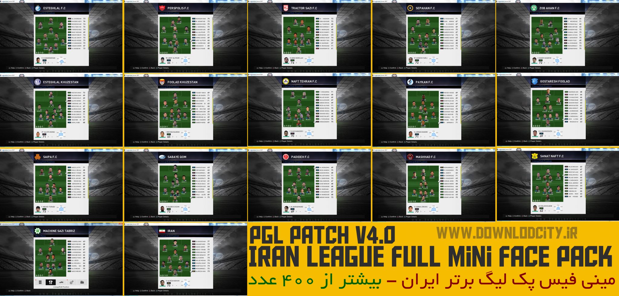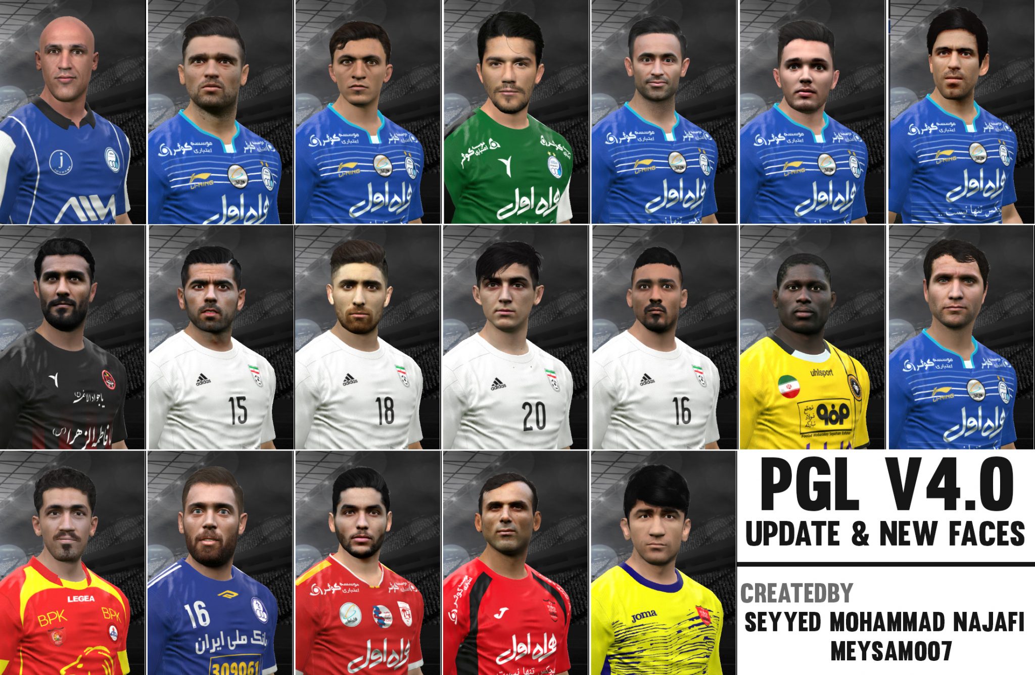 یکی دیگر از مهمترین ویژگی های پچ PGL V4.0 اضافه شدن مینی فیس تمامی تیم های لیگ برتر ایران برای اولین بار میباشد [بیشتر از 400 عکس واقعی بازیکنان ایرانی!!]