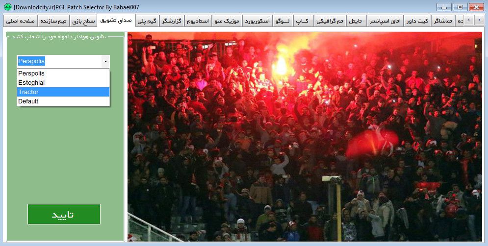 اضافه شدن بخش تغییر صدای تشویق هواداران ایرانی [استقلال، تراکتور، پرسپولیس]