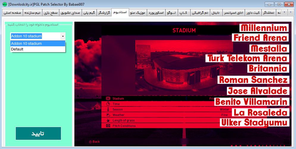 ویژگی دیگر پچ PGL V4.0 که مطمئنا خیلی هم عالی میباشد استادیوم پک 50 تایی میباشدکه شامل 49 استادیوم معروف جهان + استادیوم آزادی تهران هست