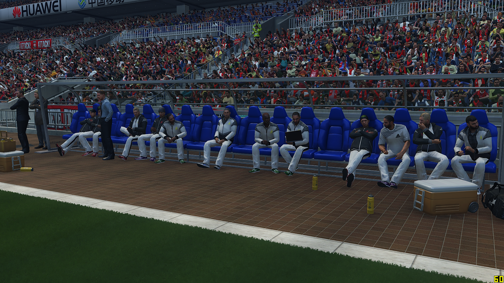 Both substitute benches are now VARIED and aren’t carbon copies of each other, Now have varied gear, nike caps, puma jackets, Adidas jackets etc