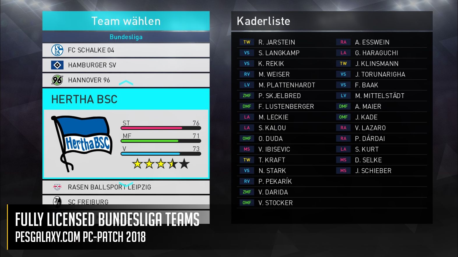 اولین نسخه پچ گلکسی PESGlaxy.com Patch 0.5 برای PES2018 با حجم 1.5 گیگابایت و توسط تیم گلکسی دات کام برای نسخه PC منتشر شده که میتوانید برای اولین بار بالینک مستقیم دانلود کنید.