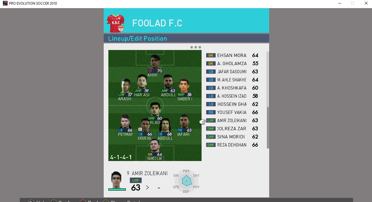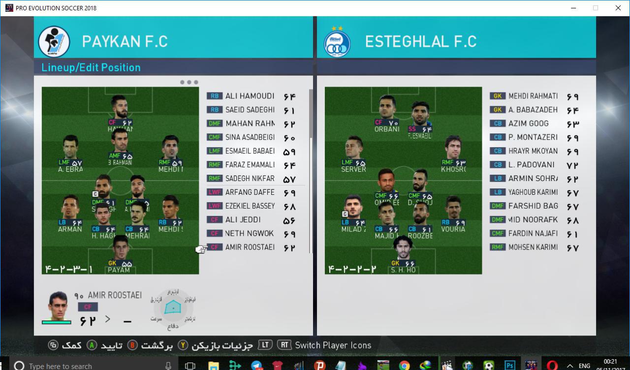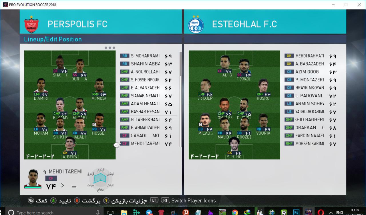 4- همانطور که اطلاع دارید با توجه به اینکه هنوز راه و روش مناسبی برای ساخت فیس در PES2018 منتشر شده است، پچ فاقد فیس ایرانی میباشد ولی در اینده به محض اینکه فیس جدیدی توسط تیم PGL ساخته شود داخل پچ قرار خواهد گرفت.