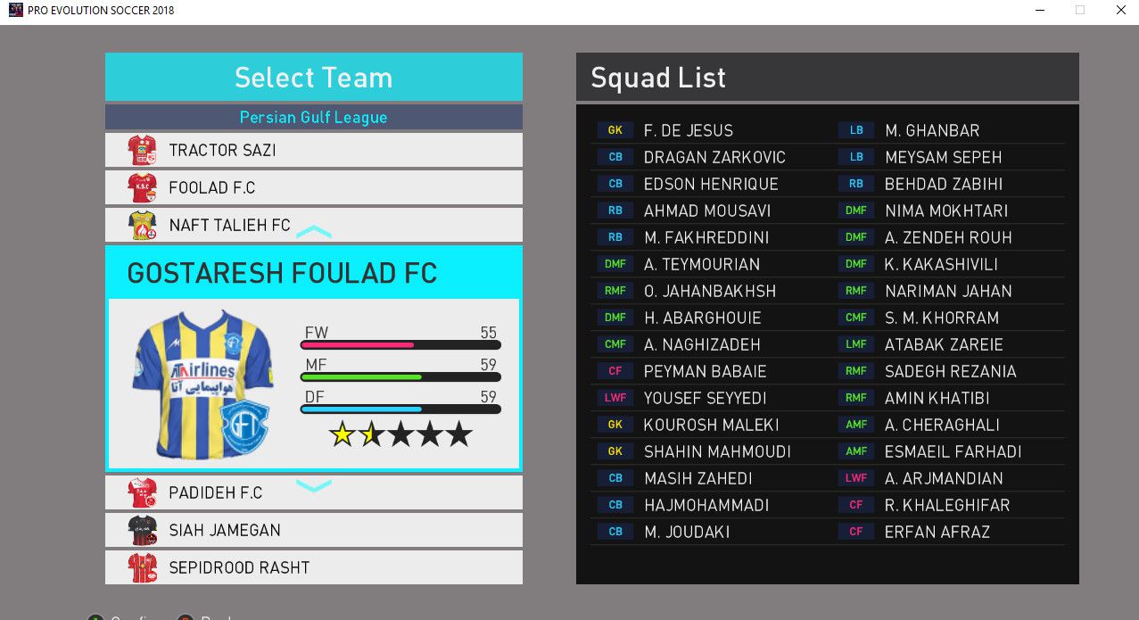 ویژگی های پچ لیگ برتر ایران PES2018: