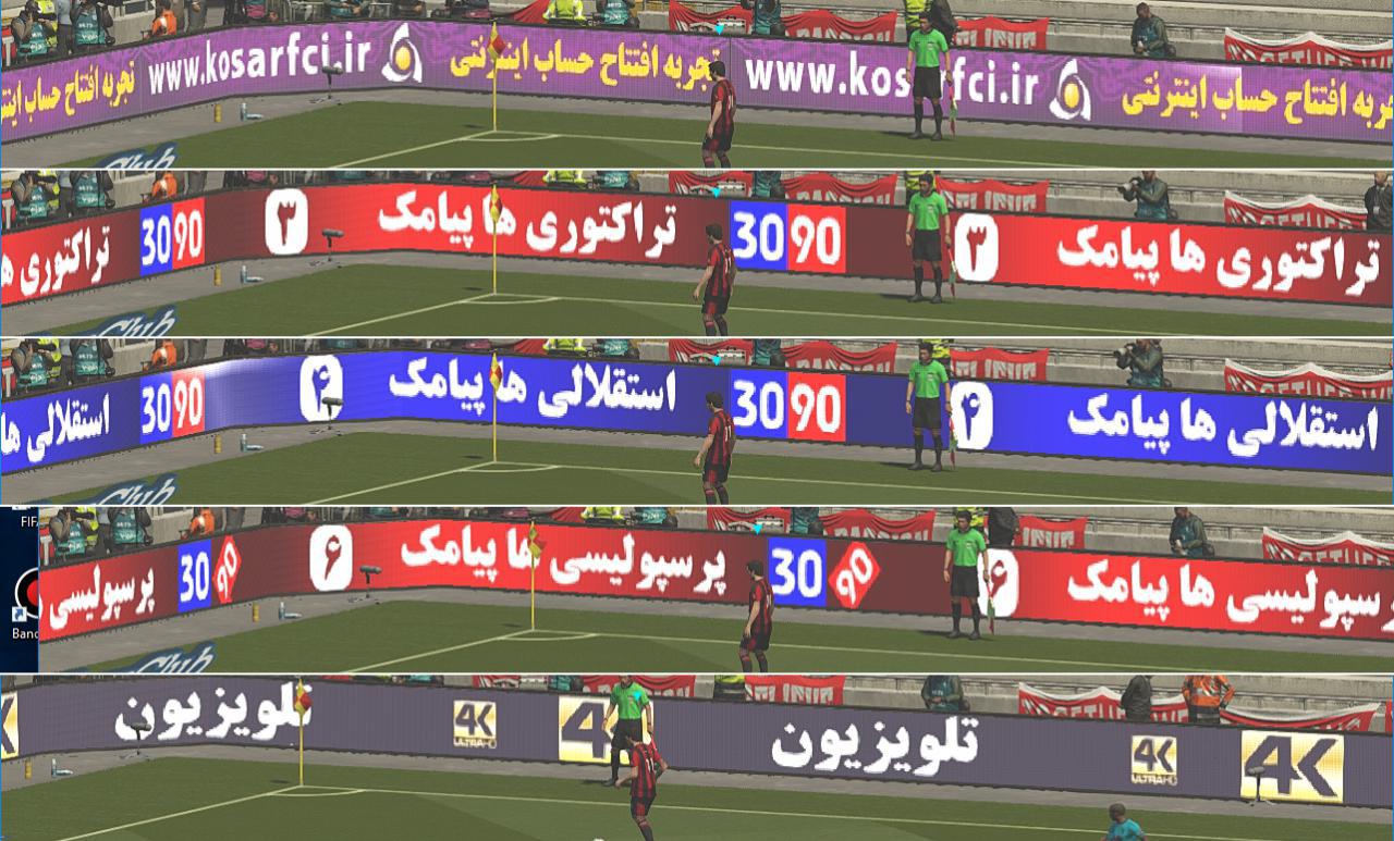 ✔ اضافه شدن تابلوی تبلیغات الکترونیکی لیگ برتر ایران [فقط برای تیم های لیگ برتر + تیم ملی داخل بازی به نمایش در خواهند امد و اگر یک تیم خارجی انتخاب کنید ادبورد اختصاصی خودش یا گلوبال داخل استادیوم پخش میشود]