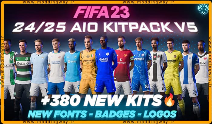 هم اکنون کیت پک 24/25 AIO V5 برای FIFA 23 را در اختیار شما قرار داده ایم که میتوانید با لینک رایگان و مستقیم از سرور دانلود سایت مودینگ وی دات آی آر به راحتی میتوانید اقدام به دانلود کنید و از نصب آن روی بازیتان لذت ببرید