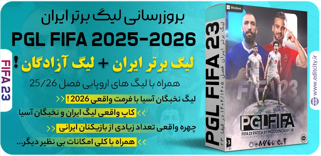 در این بخش پچ لیگ برتر ایران برای FIFA 23 فصل 1404/1405 همراه با آپدیت 2025/2026 رقابت های مختلف اروپا و جهان که با عنوان FIFA PGL PATCH V2 توسط تیم PGL و به صورت رسمی از مودینگ وی عرضه شده است را میتوانید برای کامپیوتر یا لپ تاپ خود سفارش داده و طبق اموزشی که برای آن قرار داده ایم نصب کرده و لذتشو ببرید