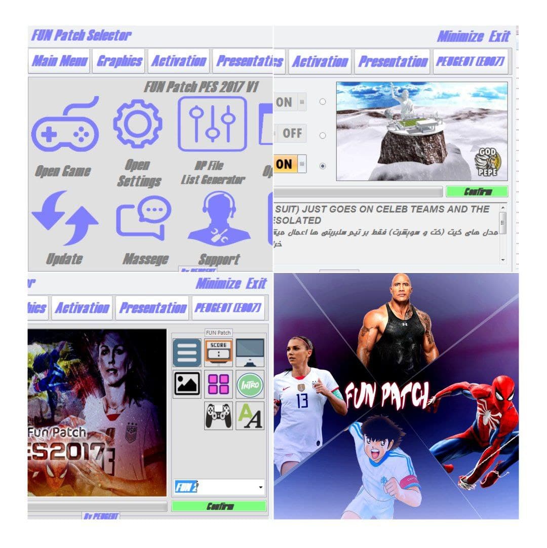 شامل چندین مدل استارت اسکرین و منو گرافیکی کاملا فانتزی از تیم ها و شخصیت های داخل پچ