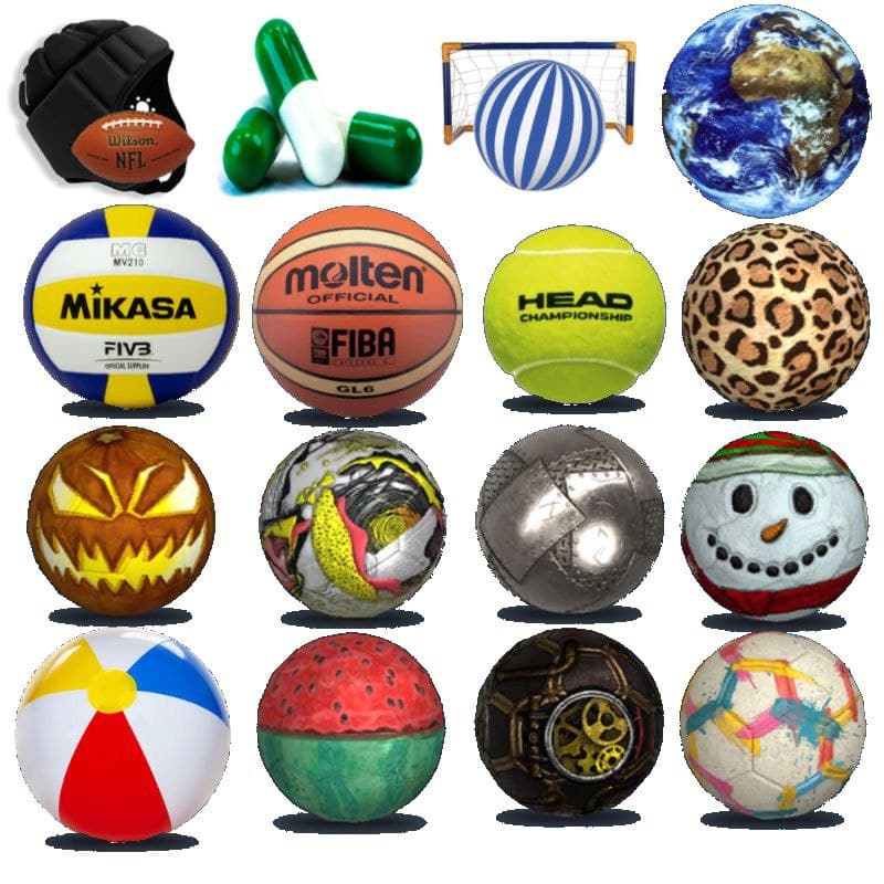 شامل توپ های متنوع و جذاب با ابعاد مختلف بزرگ و کوچک مثل توپ راگبی یا بسکتبال و والیبال و توپ ساحلی و …