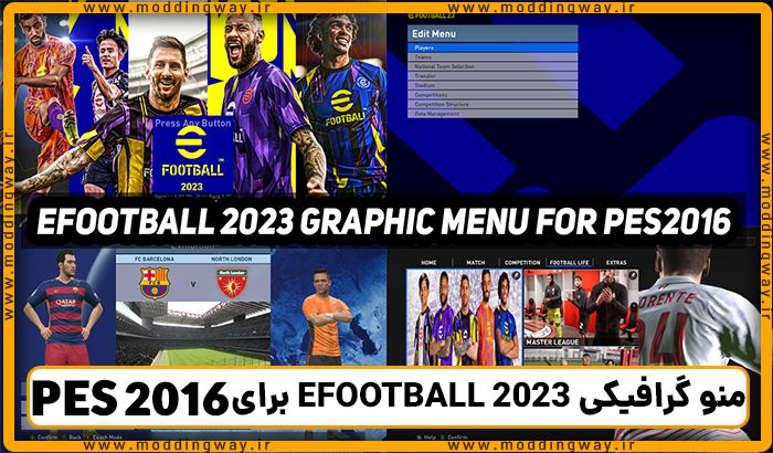 هم اکنون منو گرافیکی EFOOTBALL 2023 برای PES 2016 در اختیار شما قرار داده ایم را میتوانید با حجم 208.6 کیلوبایت و با لینک مستقیم و نیم بها و رایگان از سرور دانلود سایت مودینگ وی دات آی آر دانلود کرده و طبق اموزشی که در انتهای صفحه قرار دارد بر روی بازی خود نصب کنید و از آن لذت ببرید.