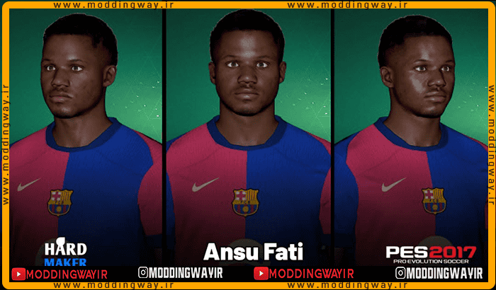هم اکنون فیس Ansu Fati برای PES 2017 را در اختیار شما کاربران عزیز قرار داده ایم که میتوانید با لینک مستقیم و رایگان از سرور دانلود سایت مودینگ وی دات آی آر به راحتی میتوانید اقدام به دانلود کنید و از نصب آن روی بازیتان لذت ببرید
