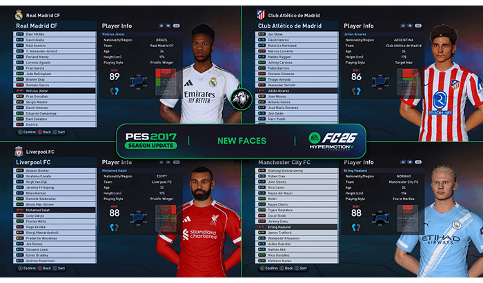 هم اکنون پچ FC 2026 Edition V1.0 برای PES 2017 را در اختیار شما قرار داده ایم که با لینک رایگان و مستقیم از سرور دانلود سایت مودینگ وی دات آی آر به راحتی میتوانید اقدام به دانلود کنید و از نصب آن روی بازیتان لذت ببرید.