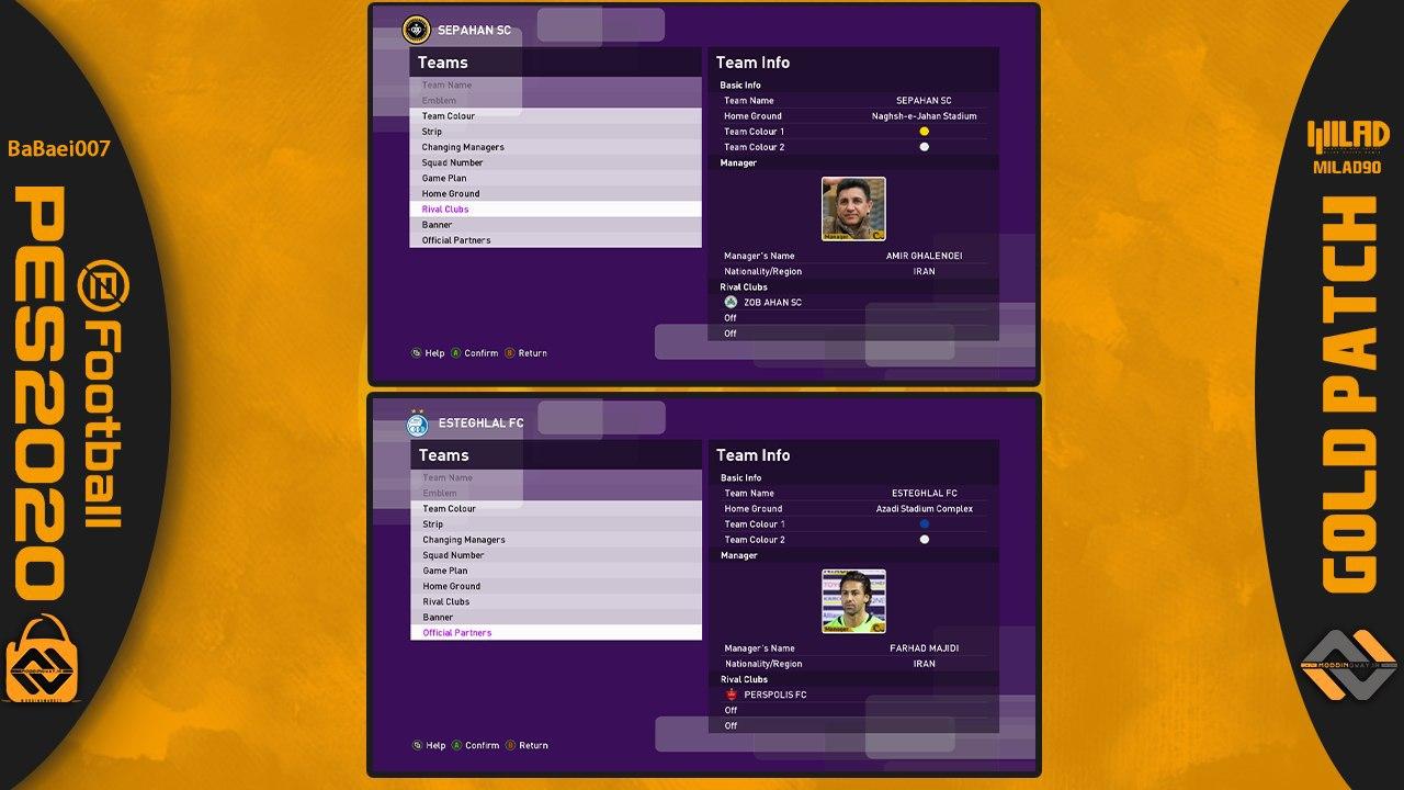 ویژگی های نسخه 1.00 طلایی پچ لیگ ایران PES 2020 :