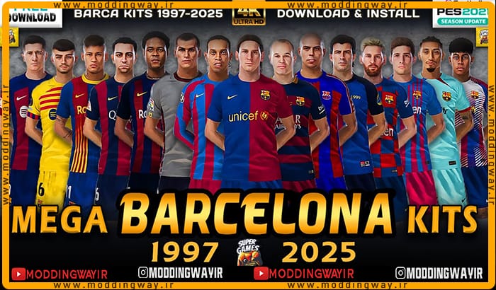هم اکنون کیت پک Exclusive Barcelona 1997-2025 برای PES 2021 را در اختیار شما قرار داده ایم که میتوانید با لینک رایگان و مستقیم از سرور مودینگ وی دات آی آر به راحتی اقدام به دانلود کرده و از نصب آن روی بازیتان لذت ببرید.