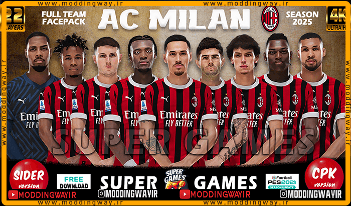 هم اکنون فیس پک AC Milan 2025 برای PES 2021 را در اختیار شما قرار داده ایم که با لینک رایگان و مستقیم از سرور دانلود سایت مودینگ وی دات آی آر به راحتی میتوانید اقدام به دانلود کنید و از نصب آن روی بازیتان لذت ببرید.