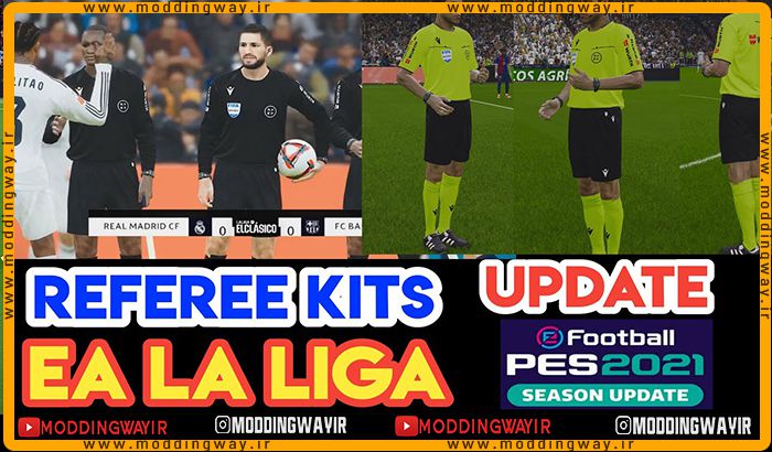 هم اکنون کیت پک La Liga EA Referee برای PES 2021 را در اختیار شما قرار داده ایم که میتوانید با لینک رایگان و مستقیم از سرور مودینگ وی دات آی آر به راحتی اقدام به دانلود کرده و از نصب آن روی بازیتان لذت ببرید.
