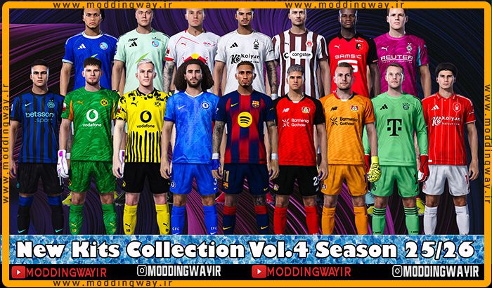 هم اکنون کیت پک Collection Vol.4 2025-26 برای PES 2021 را در اختیار شما قرار داده ایم که میتوانید با لینک رایگان و مستقیم از سرور مودینگ وی دات آی آر به راحتی اقدام به دانلود کرده و از نصب آن روی بازیتان لذت ببرید.