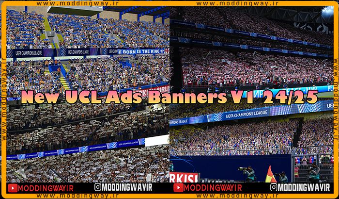 هم اکنون ماد گرافیکی UCL Ads Banners 24-25 برای PES 2021 را در اختیار شما قرار داده ایم که میتوانید با لینک رایگان و مستقیم از سرور دانلود سایت مودینگ وی دات آی آر به راحتی میتوانید اقدام به دانلود کنید و از نصب آن روی بازیتان لذت ببرید.