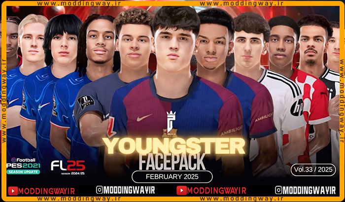 هم اکنون فیس پک Youngster 2024 v33 برای PES 2021 را در اختیار شما قرار داده ایم که با لینک رایگان و مستقیم از سرور دانلود سایت مودینگ وی دات آی آر به راحتی میتوانید اقدام به دانلود کنید و از نصب آن روی بازیتان لذت ببرید