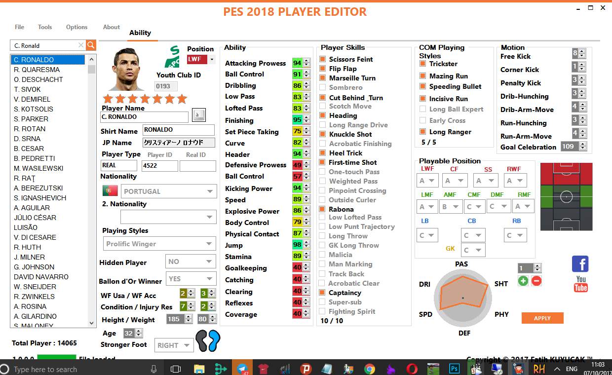دانلود نرم افزار ویرایش بازیکن در PES2018 + آموزش فارسی